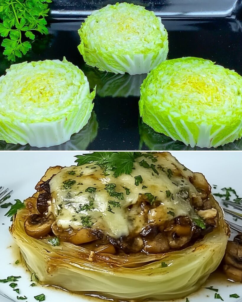 Ingredienti Per la base di cavolo: 1 cavolo cinese grande (cavolo Napa) (circa 2-2,5 libbre / 900-1100 g) 2 cucchiai di olio d’oliva (30 ml) Sale e pepe nero a