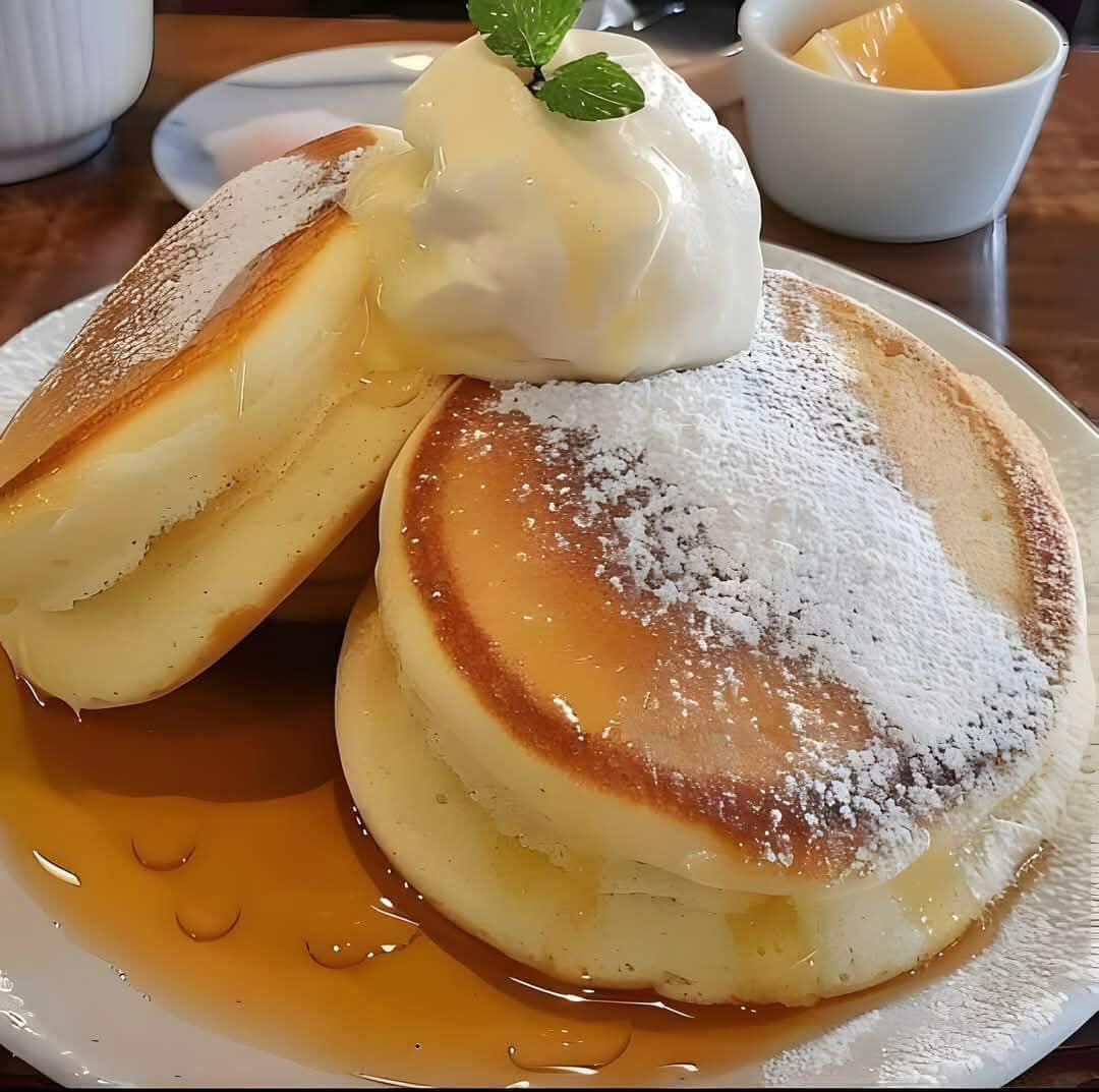Serve and Enjoy: Transfer your fluffy pancakes to a plate, dust with powdered sugar, add a dollop of whipped cream, and drizzle with maple syrup. Serve immediately and enjoy the fluffiness!