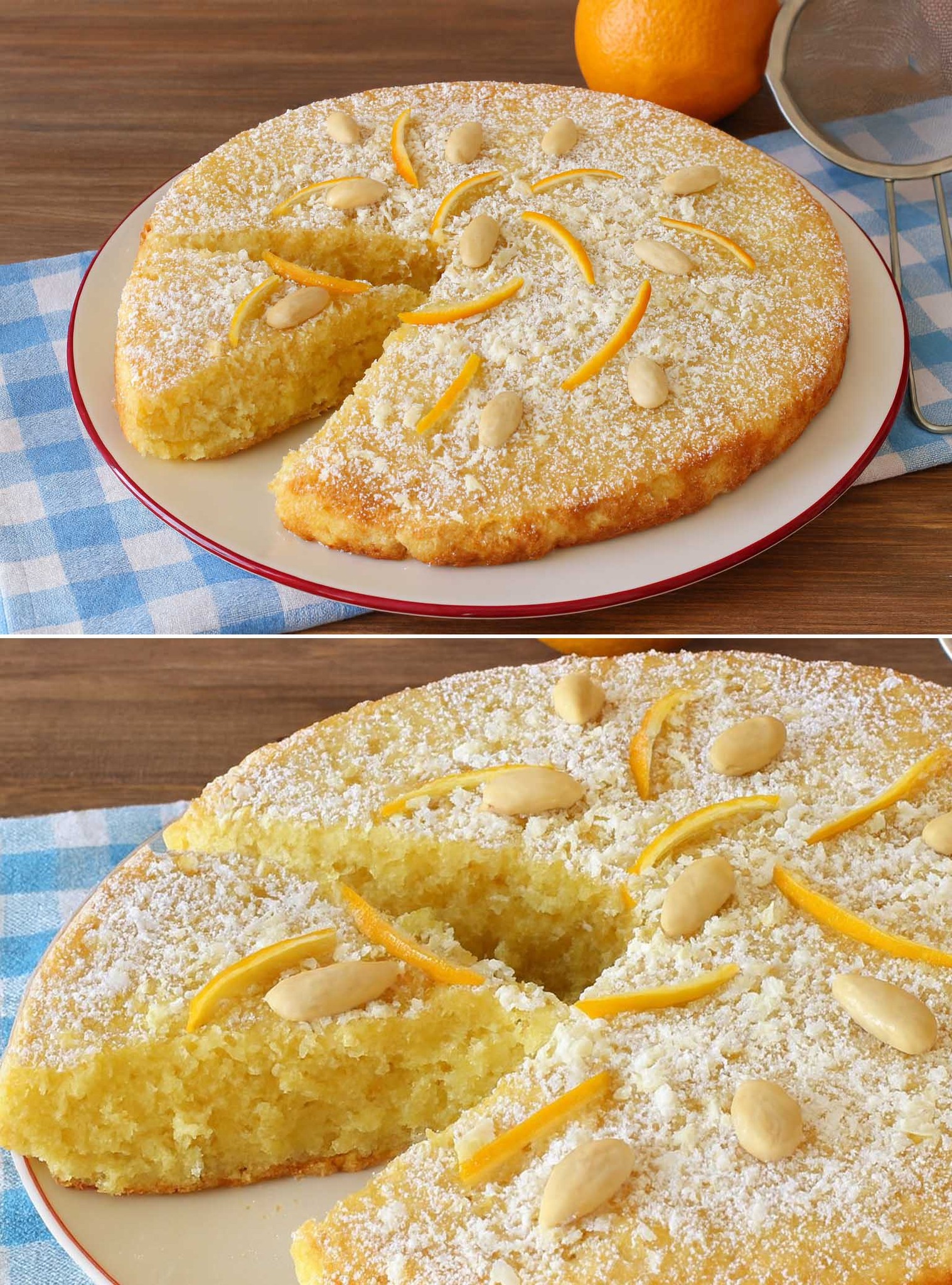 Unisci alla miscela di mandorle la fecola setacciata, il lievito e la scorza d’arancia grattugiata.