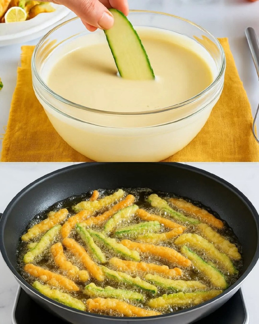Immergi l’alimento nella pastella e friggi in olio bollente (170-180°C) fino a doratura perfetta. Non sovraccaricare la padella!