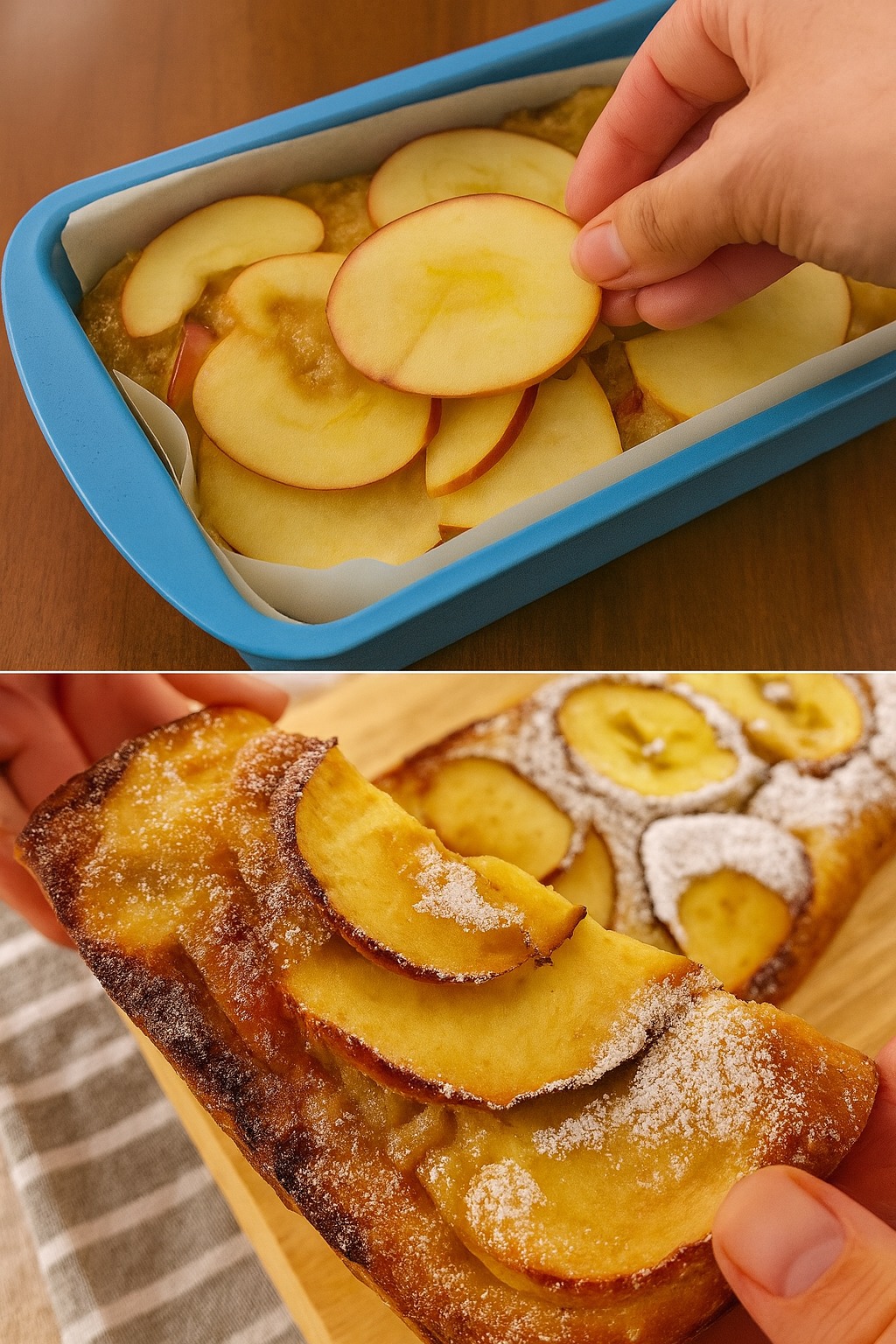 • Incorporare le mele affettate, distribuendole uniformemente nel composto.