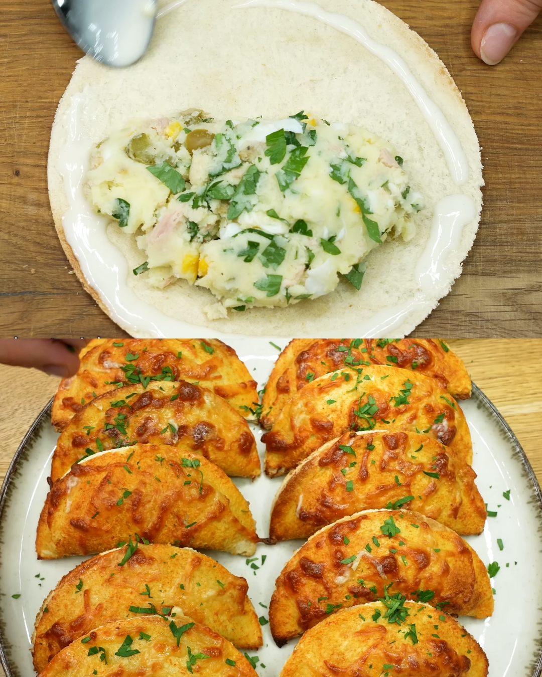 Migliora il tuo gioco di spuntini con la nostra ricetta degli involtini ripieni di tonno e patate! Perfetti per ogni occasione, questi panini croccanti sono farciti con una deliziosa combinazione di purè di patate cremoso, tonno saporito, uova sode, olive, sottaceti e mais, il tutto avvolto in una crosta dorata di fette di pane appiattite. Cotti alla perfezione e conditi con mozzarella fusa, questi irresistibili panini saranno sicuramente un successo con la famiglia e gli amici. Segui le nostre semplici istruzioni passo passo per creare queste deliziose prelibatezze nella tua cucina.